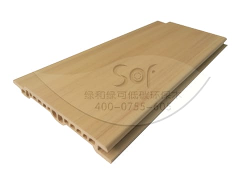 綠可木LH9510墻板(寬95mmx厚10mm)產品無污染、無公害、不含苯物質、甲醛含量為0.1低于EO級標準(歐洲頂級環保標準);根本上解決了木制產品在潮濕多水環境內外中易腐爛和膨脹變形的問題;有效阻燃B1級,離火自熄,不產生有毒氣體;有效杜絕蟲蟻騷擾;冬季隔熱,夏季保溫,可有效節約能源;有效吸收外界噪音及隔離外界噪音,給人舒適建康環境。